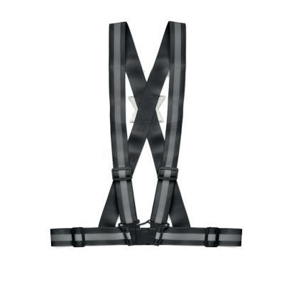 Яркий регулируемый светоотражающий ремень с серебряными полосками. Использовать только для рекламных целей.