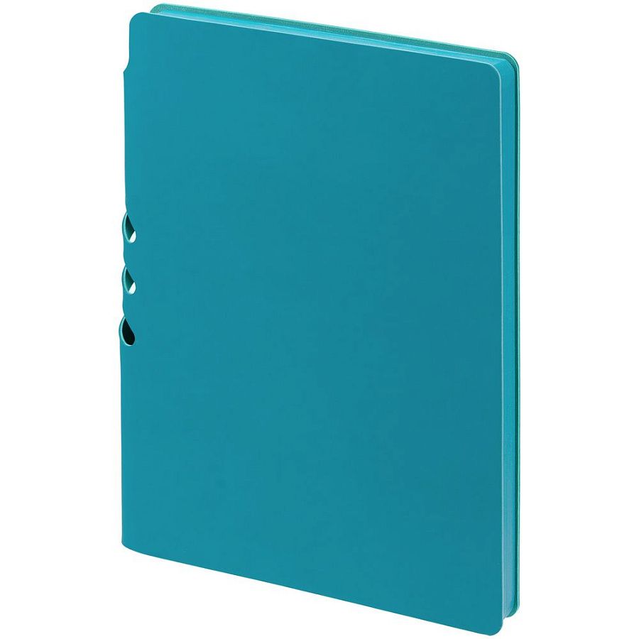 Гибкая обложка выполнена из материала Soft Touch, цвет морской волны II и Latte, цвет морской волны II (внутренняя часть обложки). Внутри корешка — специальное место для крепления ручки размером до 15х1 см.