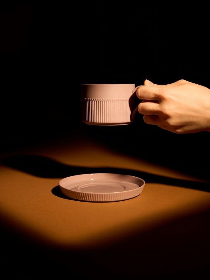 Орнамент корпуса кружки и высокого бортика блюдца напоминает изящные каннелюры — вертикальные желобки на колонне. Это добавляет всему изделию изысканности и стилистической завершенности, благородства и античной строгости.