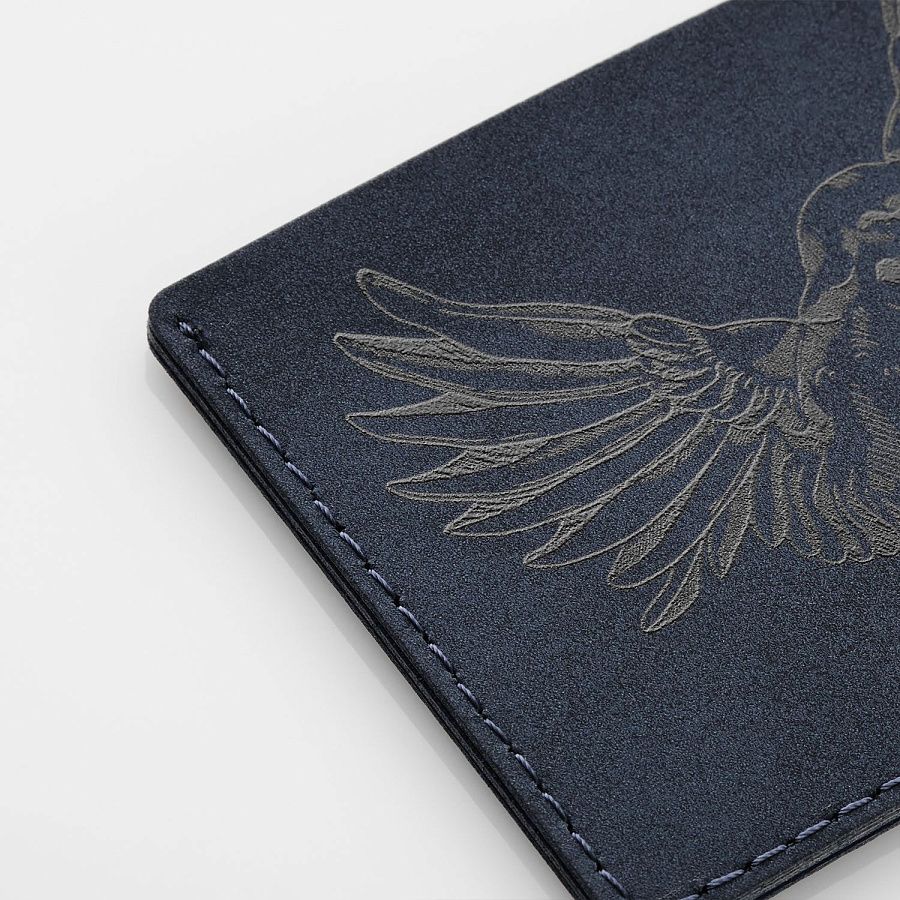 Кардхолдер выполнен из сшивки двух материалов синего цвета.