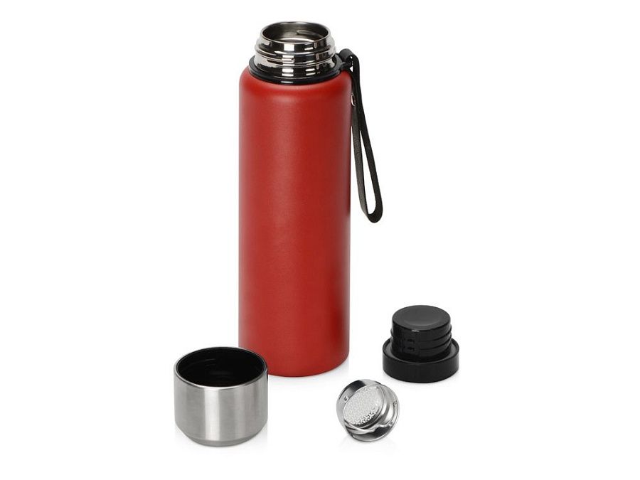 Вакуумный термос c двойными стенками из «пищевой» нержавеющей стали 304 марки для небольших путешествий и отдыха на природе. Надежно удерживает тепло и холод в течение 24 часов. Крышку можно использовать в качестве чашки. В комплекте имеется съемное ситечко из нержавеющей стали. Имеется прочный и удобный ремешок для переноски. Корпус покрыт специальной порошковой краской для надежного хвата и защиты от царапин. Объем 800 мл.