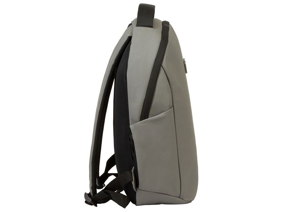 Городской рюкзак из плотной и мягкой экокожи имеет элегантный и продуманный до мелочей дизайн. Внутри расположен карман для ноутбука и органайзер. Наружный карман с эластичной вставкой расширяется и фиксируется кнопкой. Мягкая сетчатая спинка обеспечивает дополнительный комфорт. Регулируемые по длине лямки подойдут для любого пользователя. Нанесение на съемном шильде. Нетканый мешок в комплекте.