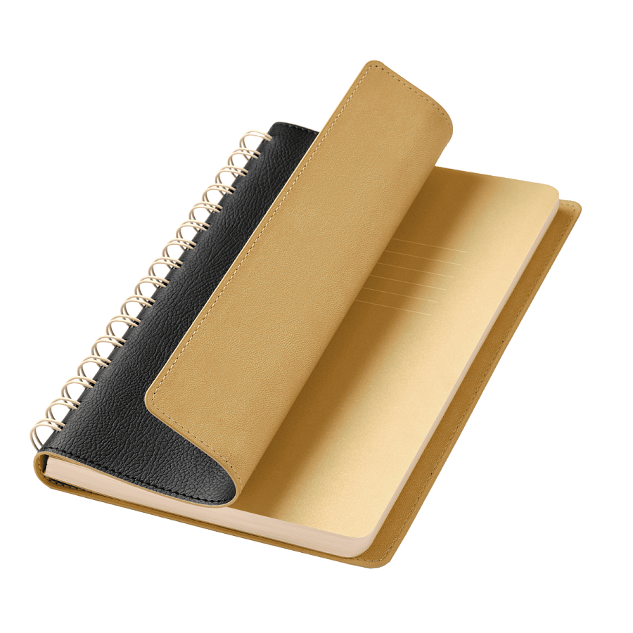 Внутренний блок с кремовыми страницами и срезом гармонично сочетается с нежным оттенком форзаца и нахзаца, повторяющим цвет внутреннего материала обложки. Надежная полускрытая пружина обеспечивает удобство использования и долговечность.