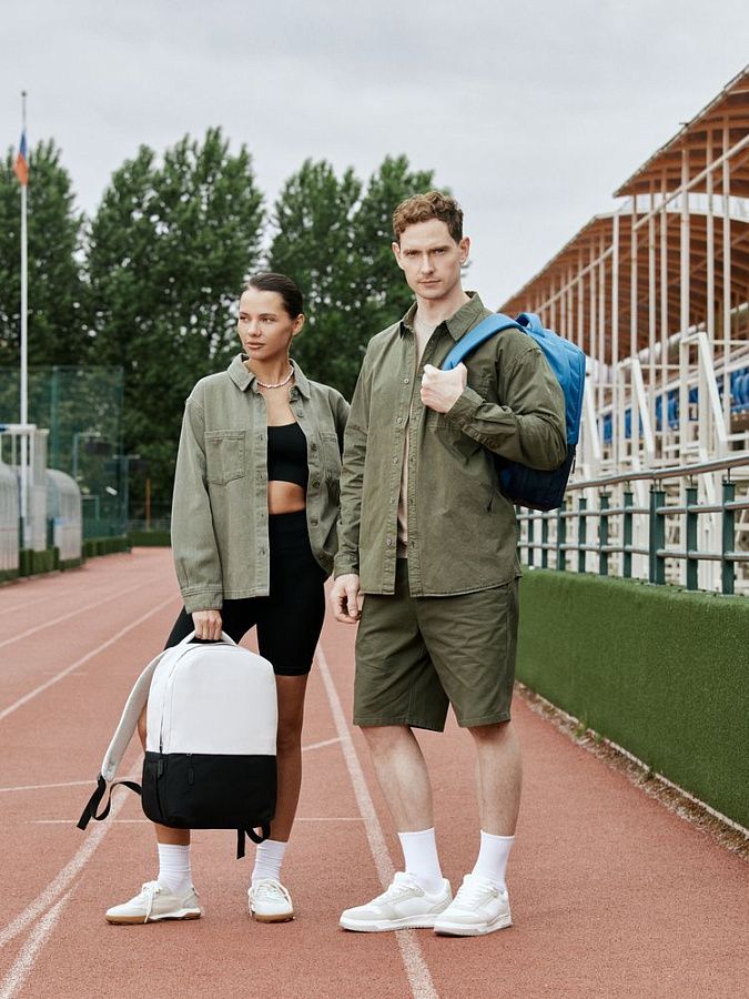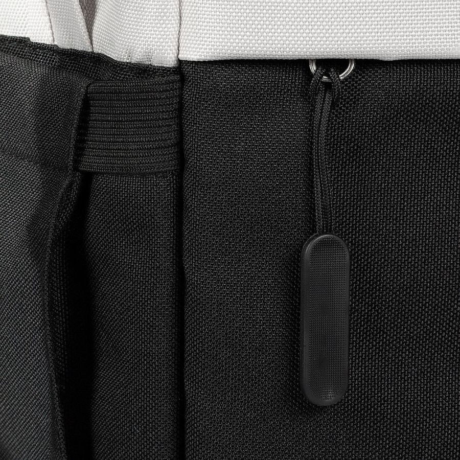 Двухцветное исполнение с темным низом и более светлым верхом, с одной стороны, помогает рюкзаку дольше сохранять опрятный внешний вид, а с другой — позволяет активнее и контрастнее выделить логотип компании.