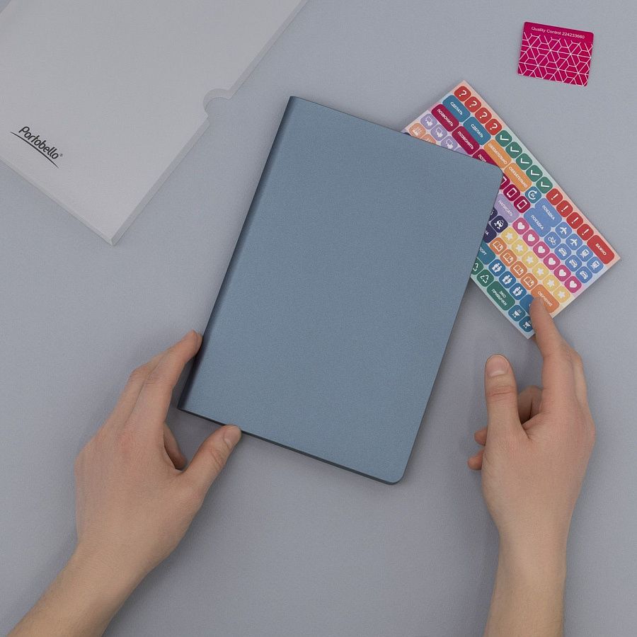 Атмосферный, лаконичный и умиротворяющий — недатированный ежедневник Moon River станет вашим идеальным спутником в мире творчества и планирования. Гибкая обложка с эксклюзивным для Portobello материалом из высококачественной искусственной кожи и с покрытием Soft Touch пленяет своей матовой поверхностью и приятной, однородной шелковистой фактурой. Глубокий, насыщенный, припудренный оттенок обложки добавляет ежедневнику нотку изысканности и загадочности.