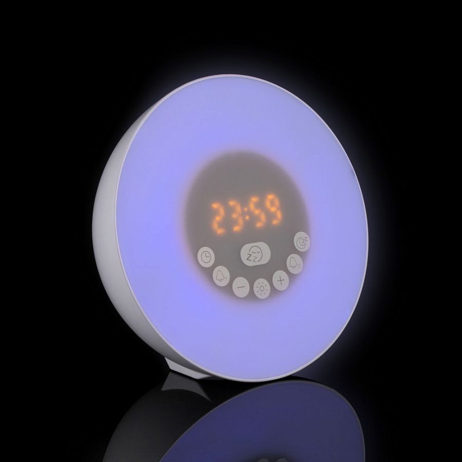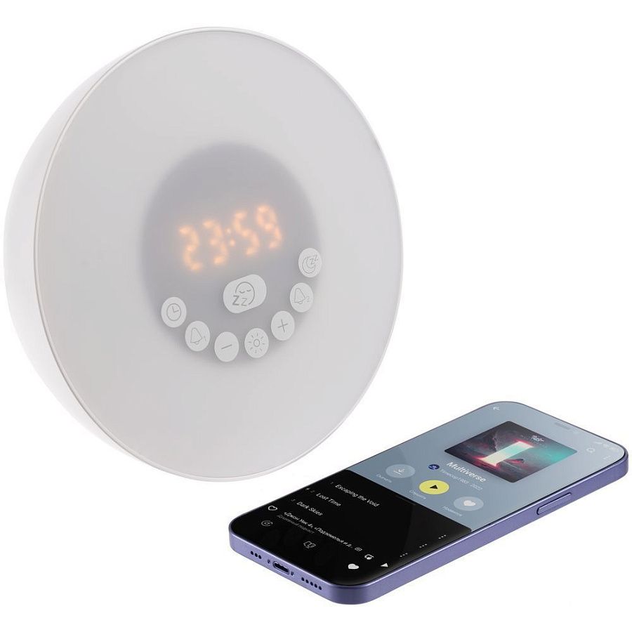 Лампа активируется за некоторое время до настроенного будильника и постепенно увеличивает яркость вплоть до момента, когда вы планируете окончательно проснуться. Эффект мягкого пробуждения можно дополнить звуками природы: шумом волн или пением птиц.