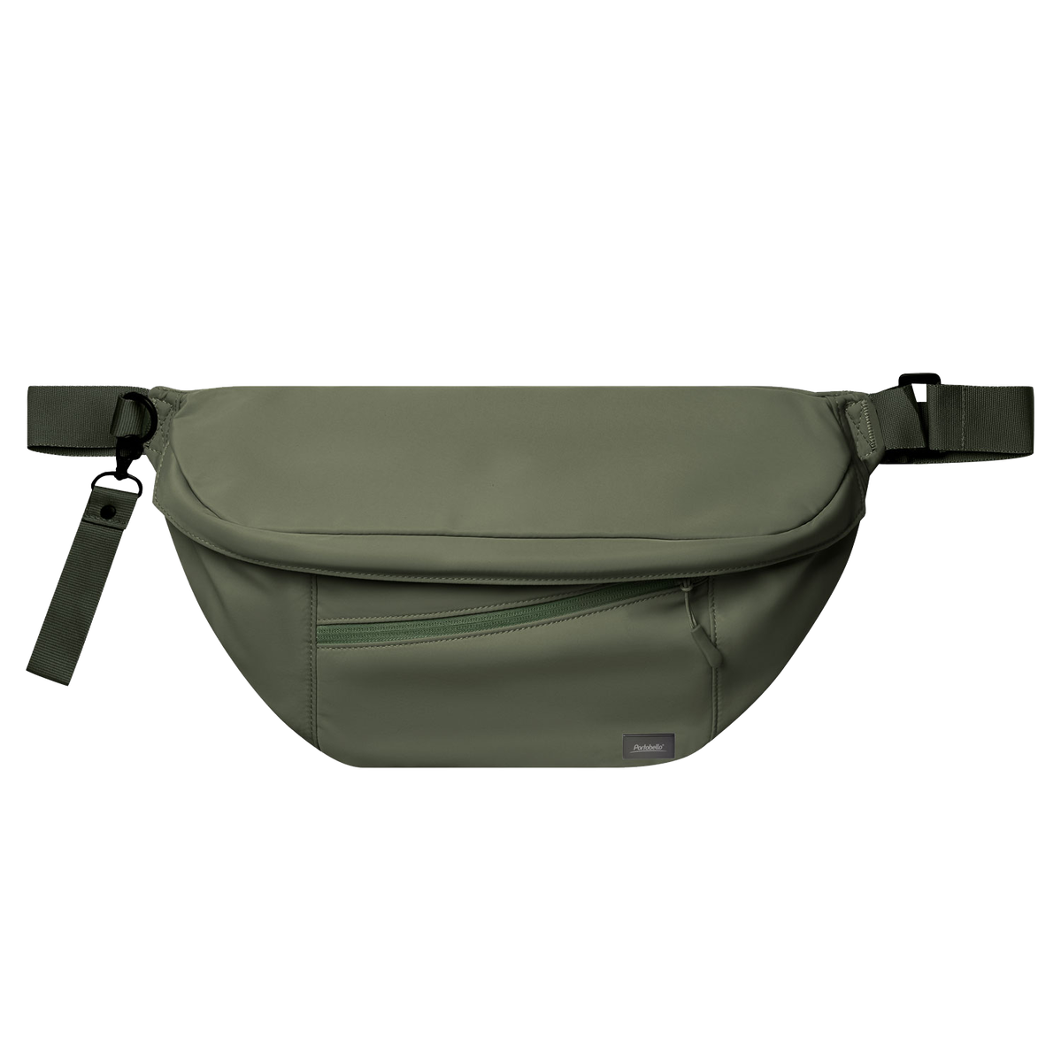 Поясная сумка изготовлена из прочного материала — полиэстер.