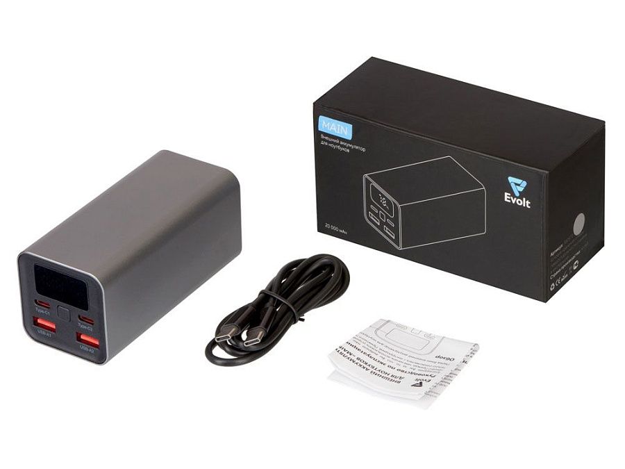 Надежный аккумулятор в металлическом корпусе, который снабжен многоуровневой защитой от скачков напряжения и коротких замыканий. Предназначен не только для ноутбуков*, но и может супер быстро зарядить планшеты и смартфоны (можно подключить до 4-х устройств). Уровень заряда отображается на дисплее, на котором также отображаются текущие напряжение и сила тока. Быструю зарядку теперь можно увидеть в "прямом эфире". Кабель с поддержкой зарядки 65 Вт уже в комплекте.