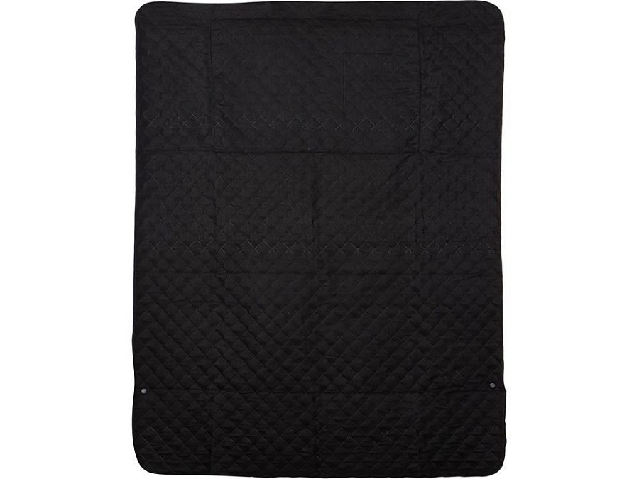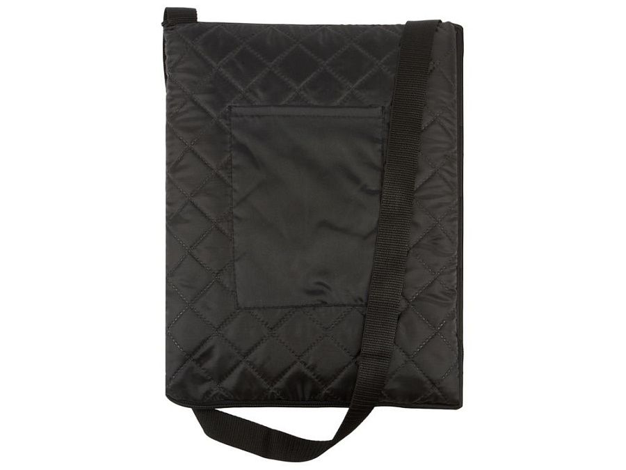Двухсторонний плед с водоотталкивающим покрытием с одной стороны и мягким флисом с другой. Складывается в сумку на плечо и фиксируется с помощью молнии. В собранном виде имеет регулируемый по длине ремень для переноски и наружный карман для мелочей.