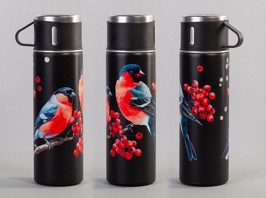 Термос удобно держать за ручку. Корпус в защитном порошковом покрытии (powder), рекомендуем гравировку газовым лазером и объемную уф-печать, см. фото. Колба из нержавеющей пищевой 304 стали. Клапан с кнопкой для удобного розлива и эффективного сохранения температуры напитка.
