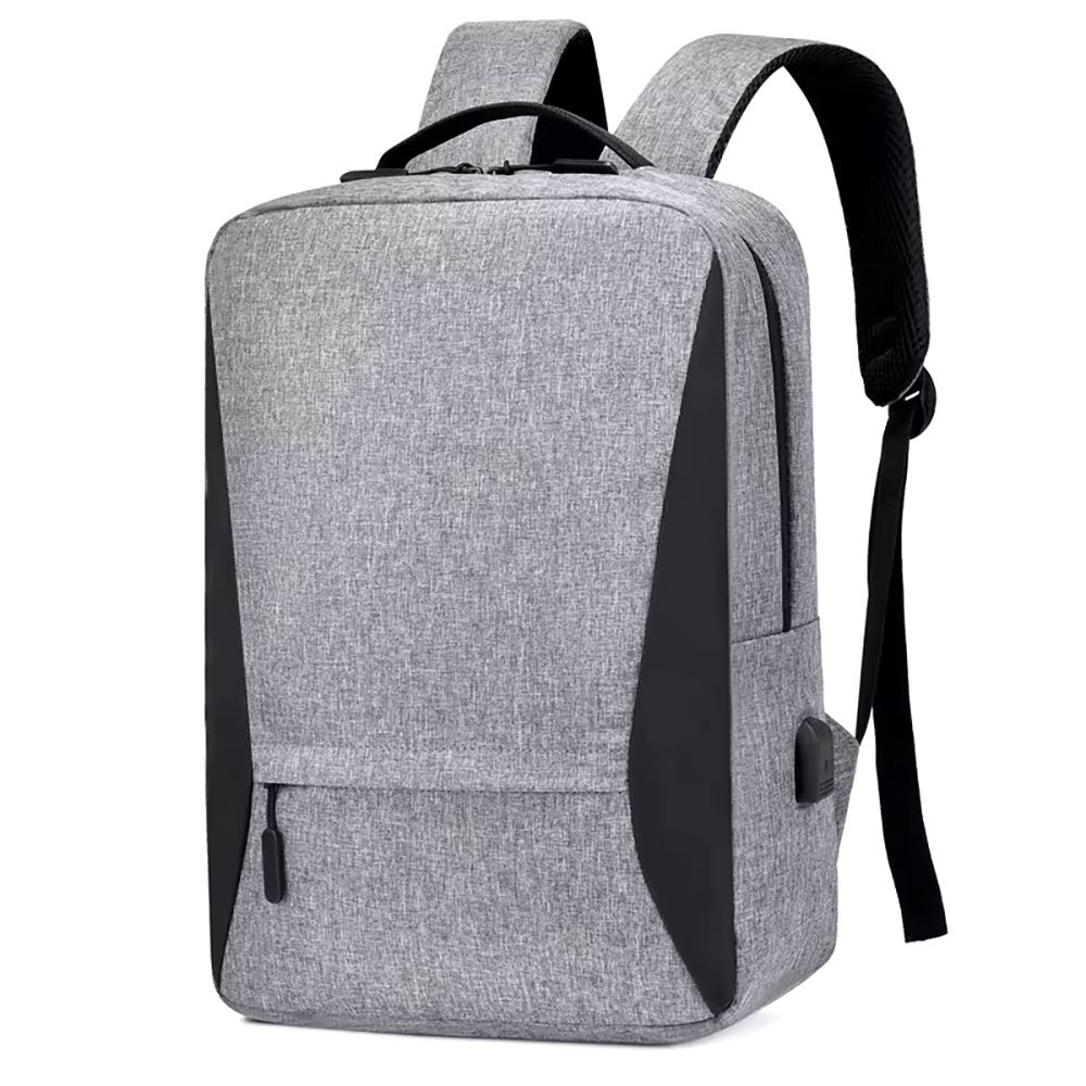 Снаружи карман на молнии на передней стенке, открытый боковой карман и USB-разъем с проводом для подключения внешнего аккумулятора.