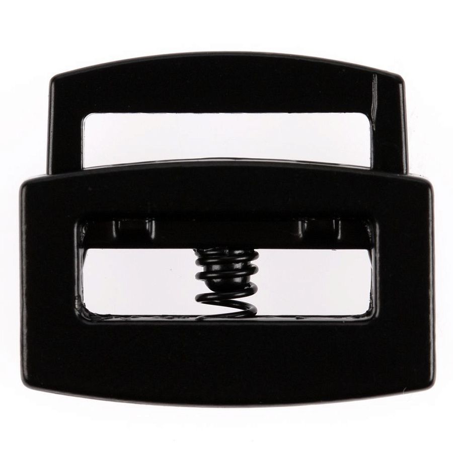 Для установки необходимо нажать на кнопку фиксатора и пропустить шнур через отверстие. Подходит для лент шириной до 1 см или для круглых шнуров и резинок диаметром до 0,5 см.