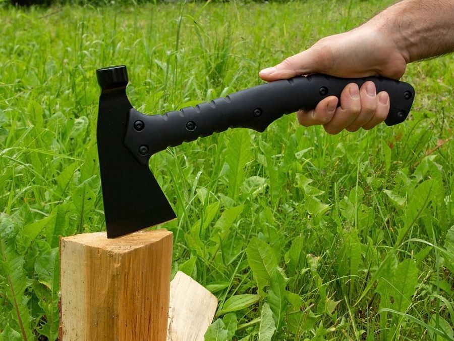 Туристический топор с молотком на обухе поможет нарубить дрова, расчистить место для стоянки, подготовить кострище и поставить лагерь.