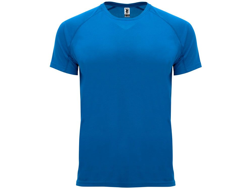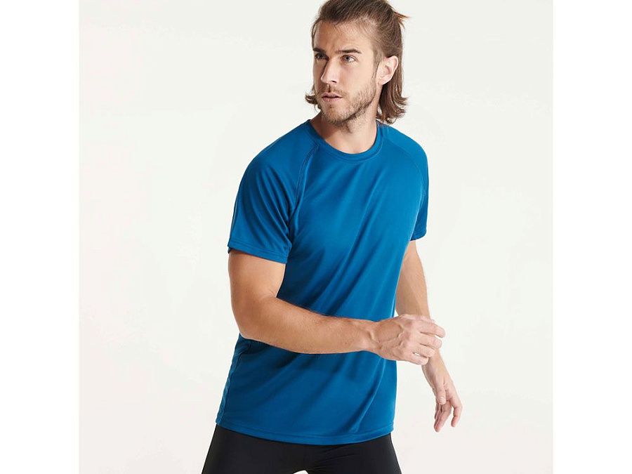 Спортивная футболка с коротким рукавом реглан. Круглый вырез горловины с отделкой плоским швом. Рукав сложного кроя для обеспечения дополнительного удобства при занятиях спортом. Отделка плоским швом с застилом по пройме и рукавам.