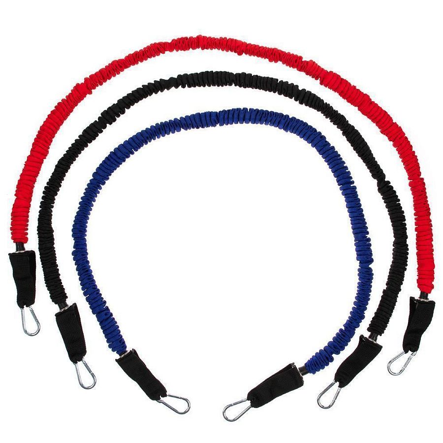 В набор входят 3 трубчатых эспандера с разной степенью нагрузки от 6,8 до 15,8 кг. Меняя и комбинируя их, можно усиливать или ослаблять нагрузку во время тренировки.