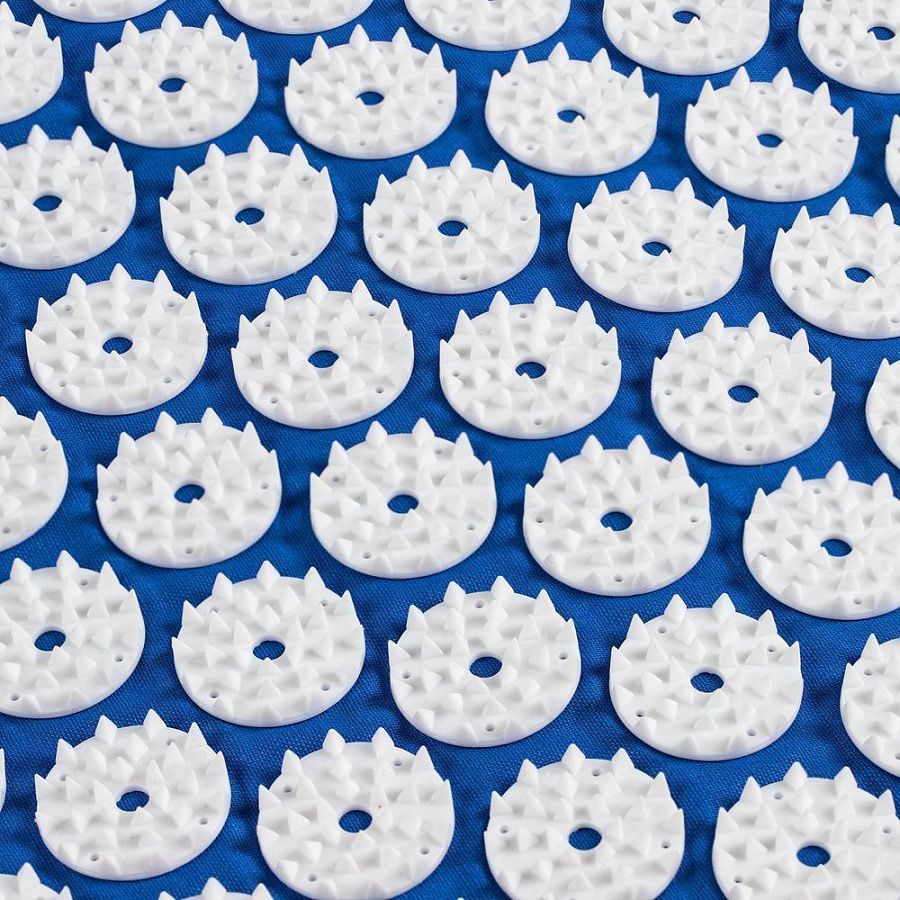 - На поверхности коврика расположены 230 массажных шипа, на подушке — 66;