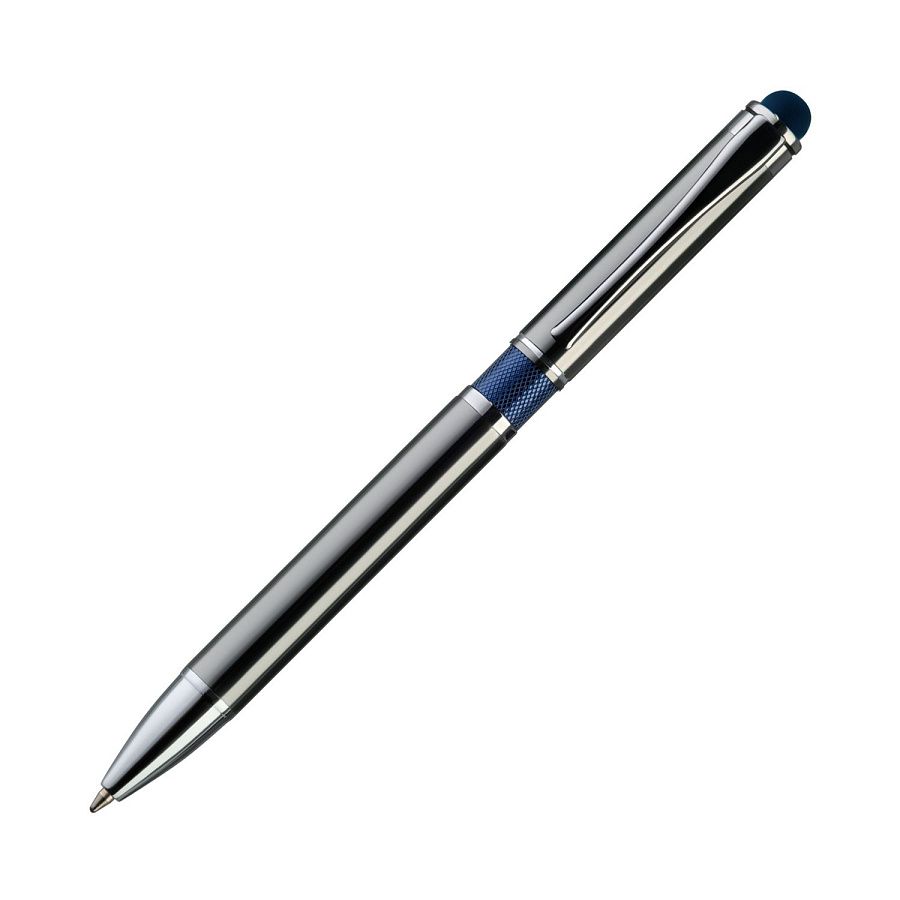Классическая ручка цвета металлик с цветными деталями. Оснащена стилусом для работы с сенсорными экранами.