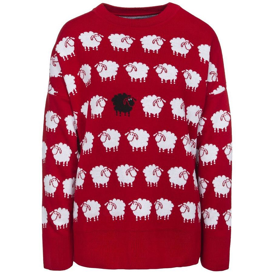 Свитер унисекс с вывязанным логотипом и индивидуальным рисунком в фирменной цветовой гамме.