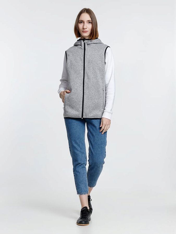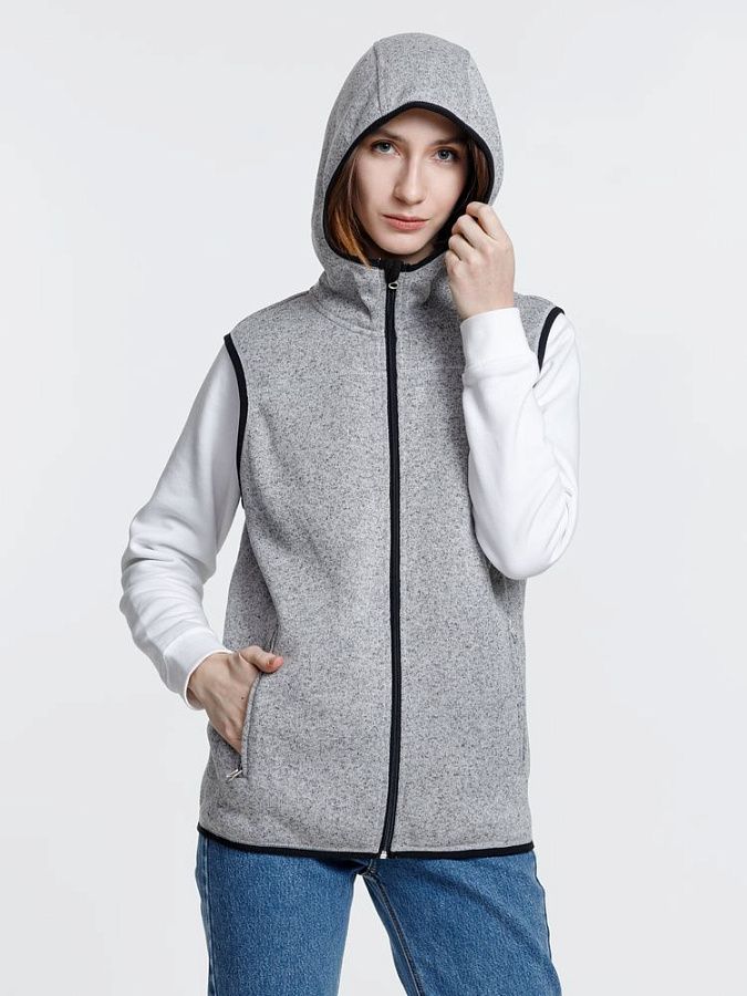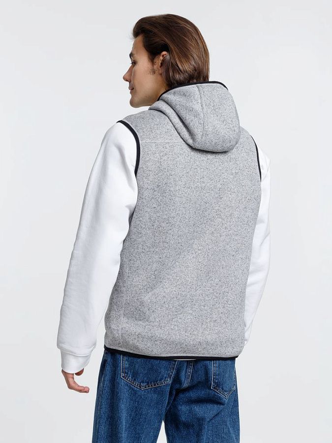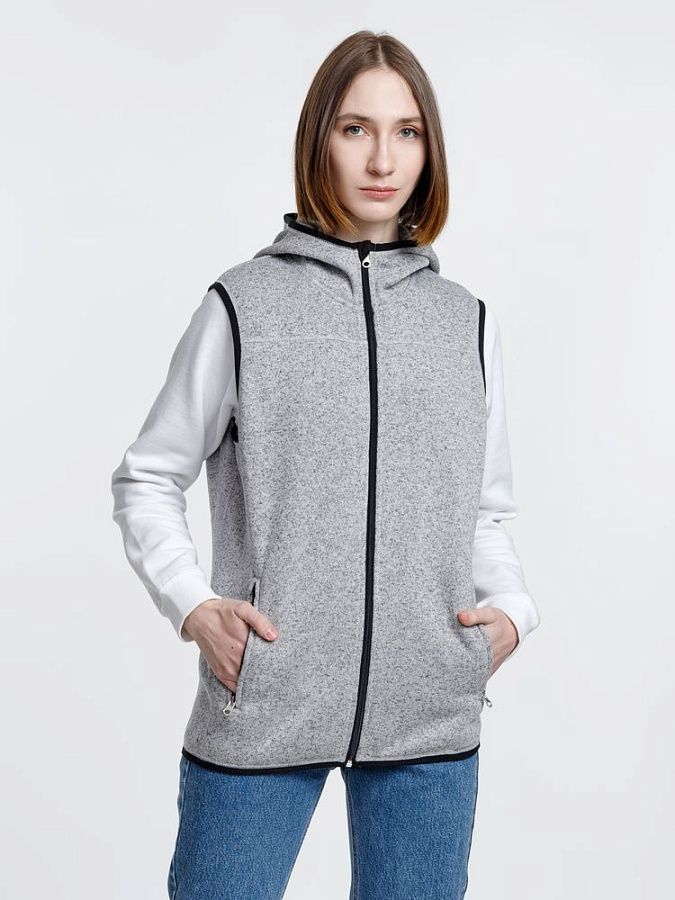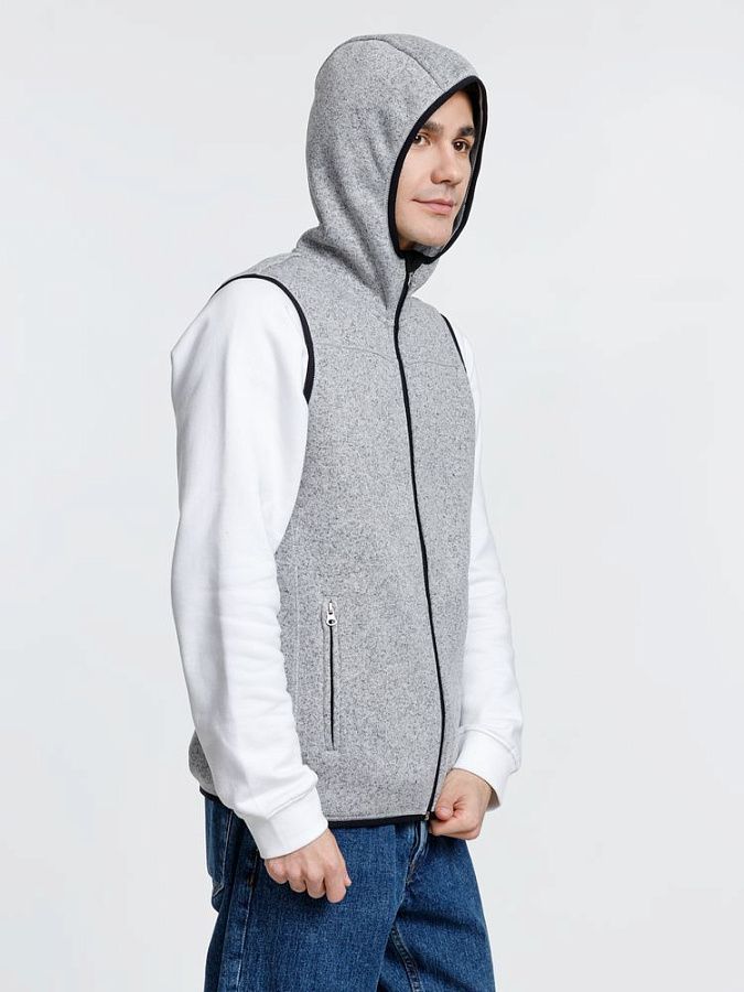 Вязаный жилет унисекс на молнии с капюшоном.