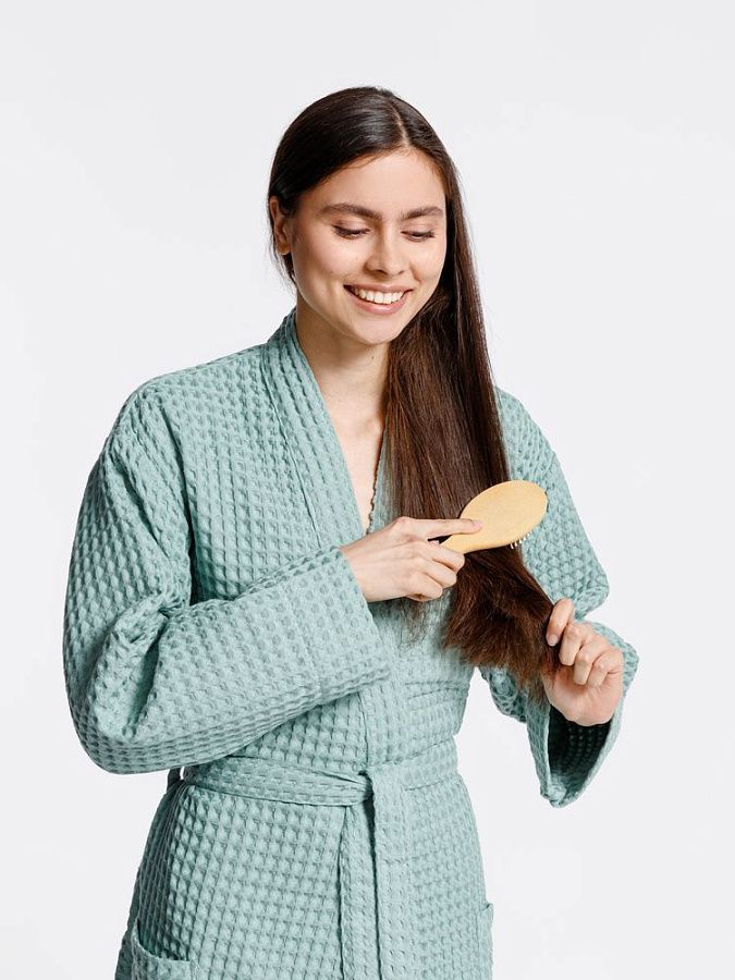 Массажная расческа Vihri из карельской березы с закругленными деревянными зубцами обеспечивает бережное расчесывание волос любой длины. Натуральный материал не дает жирным волосам засаливаться, а сухим — сечься и ломаться, нейтрализует статическое электричество, приглаживает чешуйки и усиливает естественный блеск.