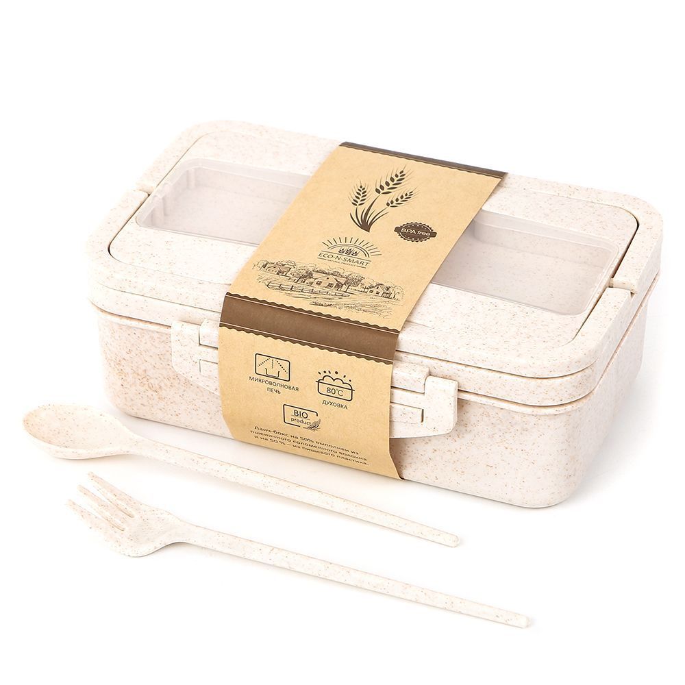 Улучшенная версия популярного Sadler. Выполнен на 50% из пшеничного волокна, также подходит для разогревания в микроволновой печи (не более 80°С). Вилка и ложка из того же материала, находятся под прозрачной матовой крышкой. 3 отсека общей вместительностью в 1 литр! Удобно, надёжно, практично.