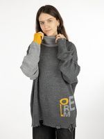 Свитер унисекс с вывязанным логотипом и индивидуальным рисунком в фирменной цветовой гамме.