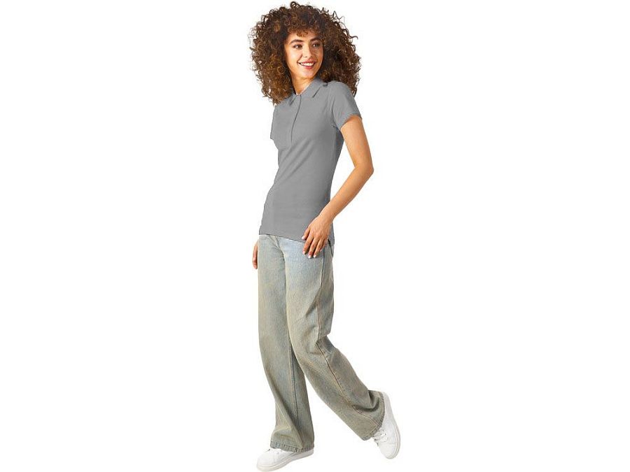 Женская рубашка-поло First. Воротник 1х1. Обшивка внутри воротника. Мужская и детская модели с 2 пуговицами, женская - с 4 пуговицами. Пуговицы с гравировкой в тон. Пике, 100% хлопок. 160 г/м2.
