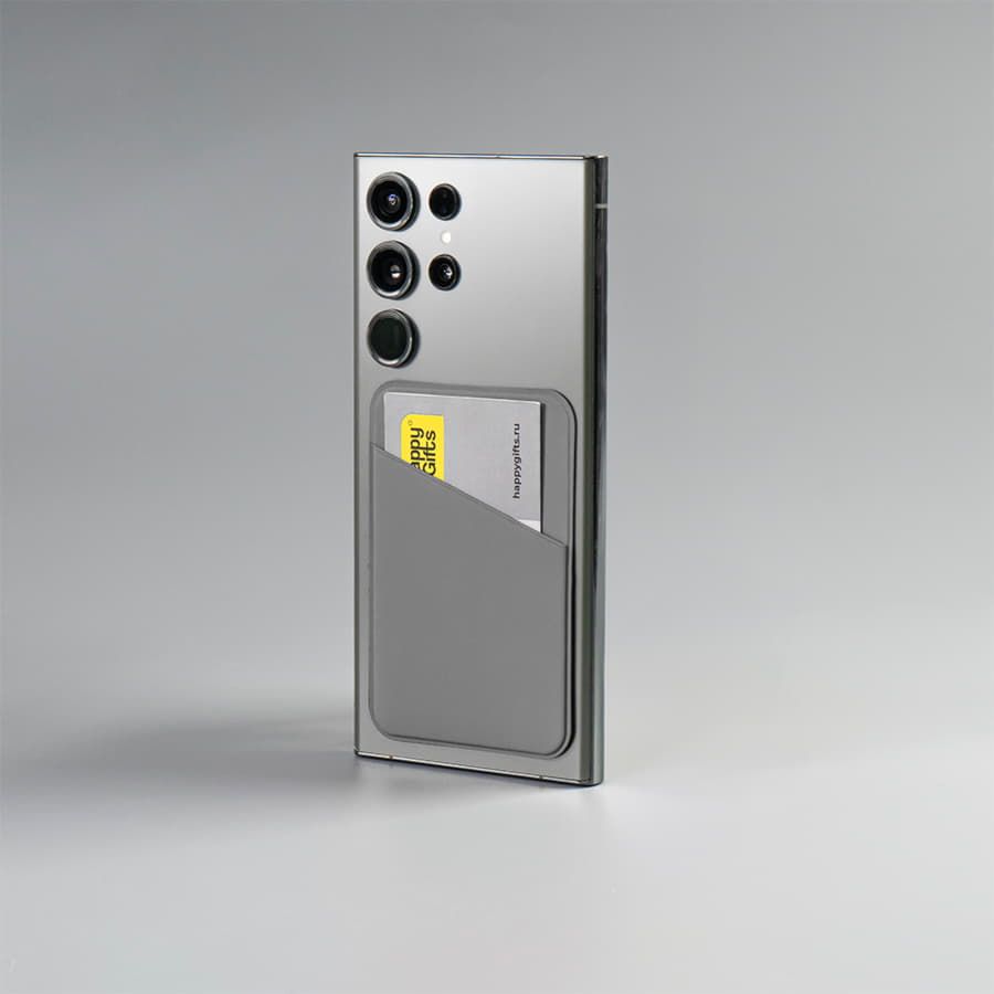 Чехол для карты Simply, самоклеящийся 65 х 97 мм, серый, PU, с эффектом soft touch, для карты 86 мм х 54 мм, скошенный угол. Крепится с помощью двухстороннего скотча.