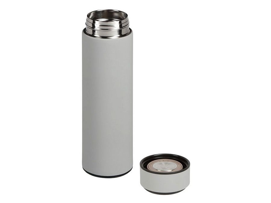 Вакуумный термос «Module X» не только сохраняет ваши напитки горячими, но и показывает, насколько они горячие! Уникальная особенность термоса — это сенсорный индикатор температуры, расположенный в крышке. Чтобы узнать температуру внутри термоса, достаточно прикоснуться к поверхности крышки. Батарейку CR2032 по истечении срока работы (1-2 года) можно заменить — для этого открутите верхнюю часть крышки против часовой стрелки и аккуратно поменяйте элемент питания.