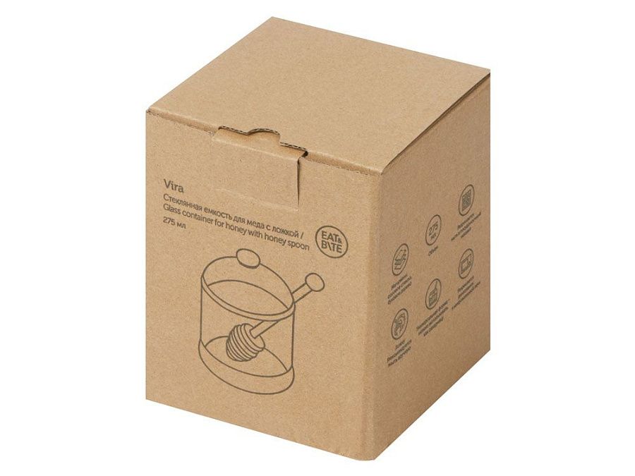 Сосуд выполнен из стекла, его можно мыть в посудомойке и разогревать в СВЧ-печи, что может очень пригодиться при приготовлении некоторых блюд и напитков с использованием меда.
