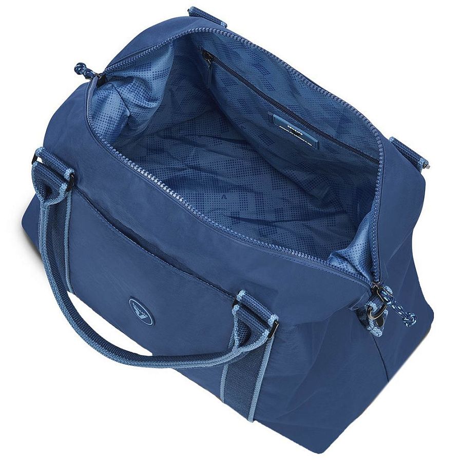 Съемный регулируемый ремень с накладкой и две подъемных ручки позволяют с комфортом носить сумку как на плече, так и в руках.