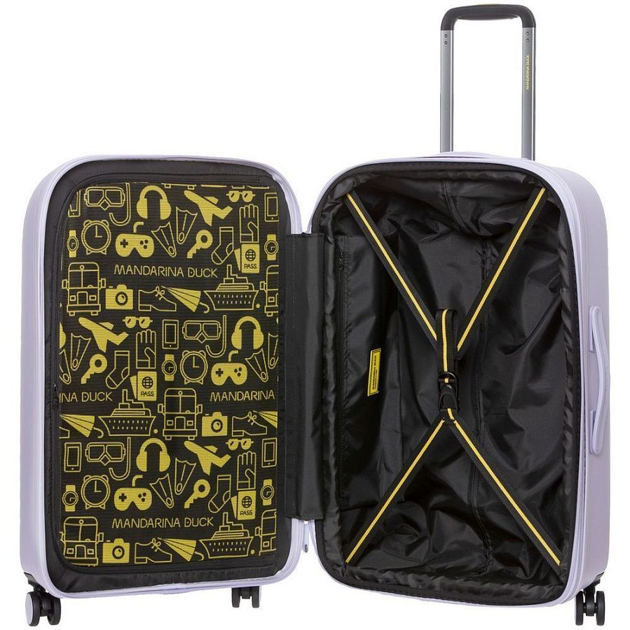 Коллекция чемоданов из поликарбоната Logoduck+ стала настоящим бестселлером: обтекаемые изящные формы, колеса в тон корпуса, крупный логотип бренда, подкладка с принтом и яркие цвета делают их уникальными в своем роде. Упаковочные ремни, разделитель на молнии и дополнительный карман для мелочей помогут аккуратно упаковать все необходимые вещи для поездки на 1-2 недели.
