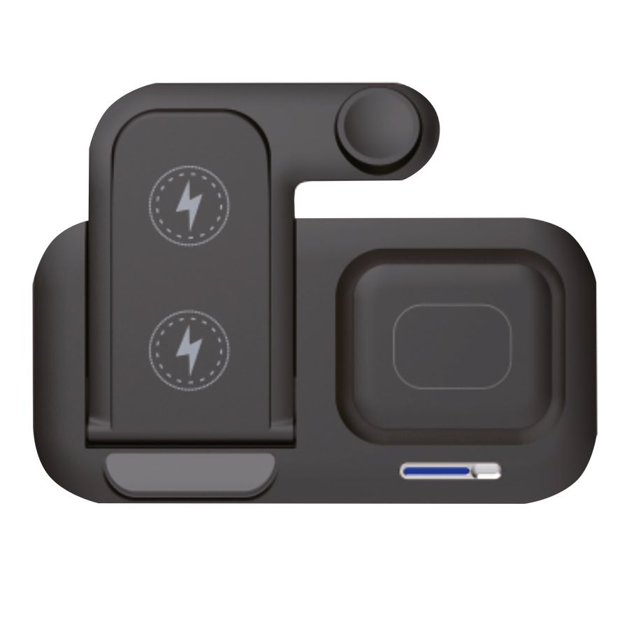 Беспроводная зарядная станция 5в1 мощностью 15 Вт представляет собой многофункциональное устройство, идеальное для зарядки различных гаджетов одновременно. Среди ее особенностей: