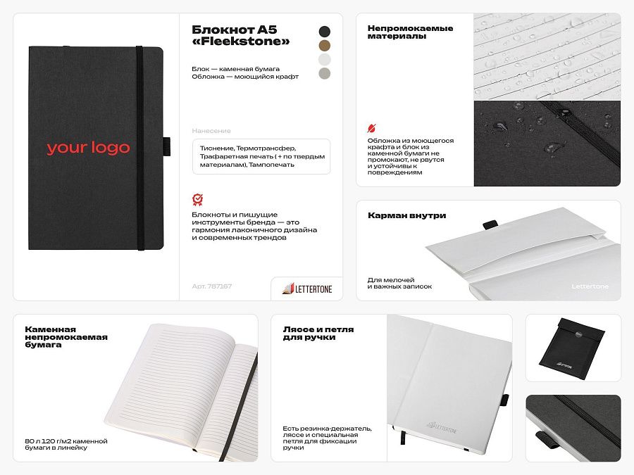 Fleekstone от Lettertone — блокнот в гибкой обложке из непромокаемого моющегося крафта.
