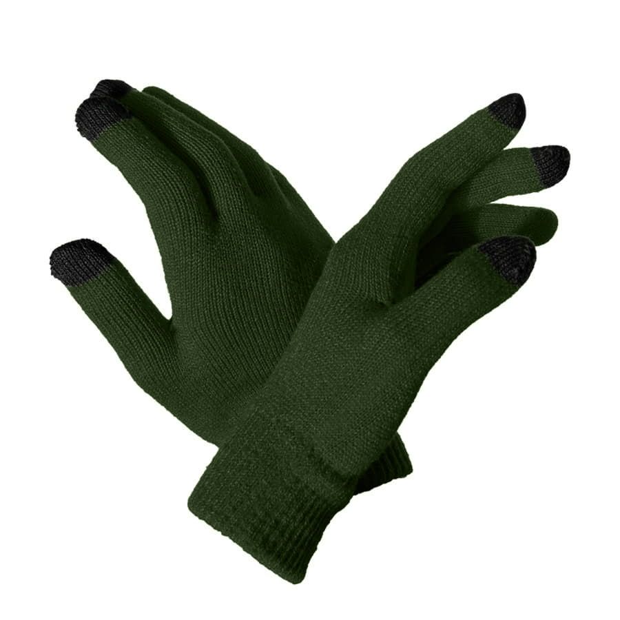 Перчатки из теплого и мягкого акрила с сенсорными пальцами. Основный цвет: зеленый. Цвет сенсорных вставок: черный. Цвет, близкий к Pantone 3537 C.