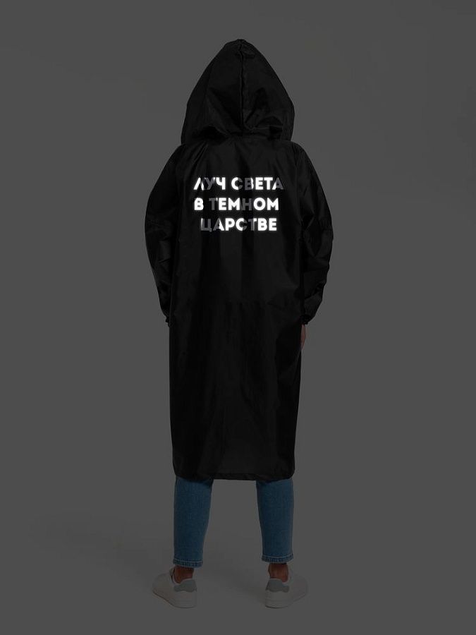 Дождевик для позитивных людей, которые озаряют этот мир своим присутствием! Луч света в темном царстве — светоотражающий принт. Хорошо видимый в темное время, он убережет вашу светлую личность от проблем на дороге.
