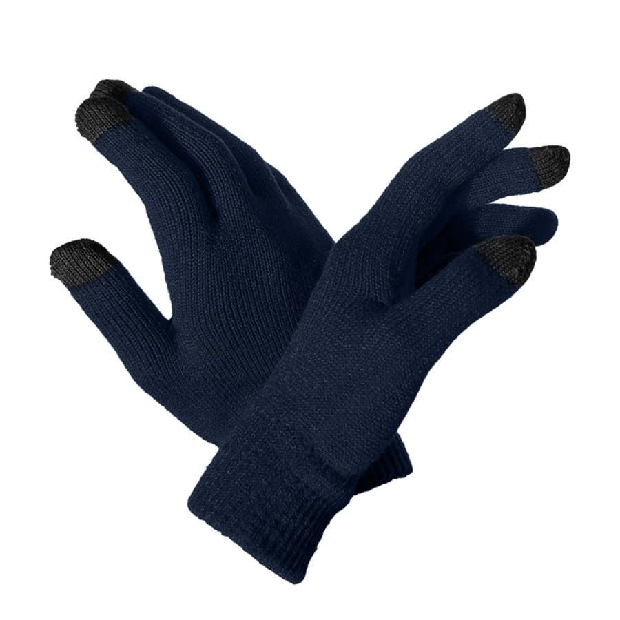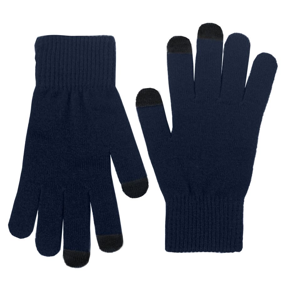 Перчатки из теплого и мягкого акрила с сенсорными пальцами. Основный цвет: темно-синий. Цвет сенсорных вставок: черный. Цвет, близкий к Pantone 296 C.
