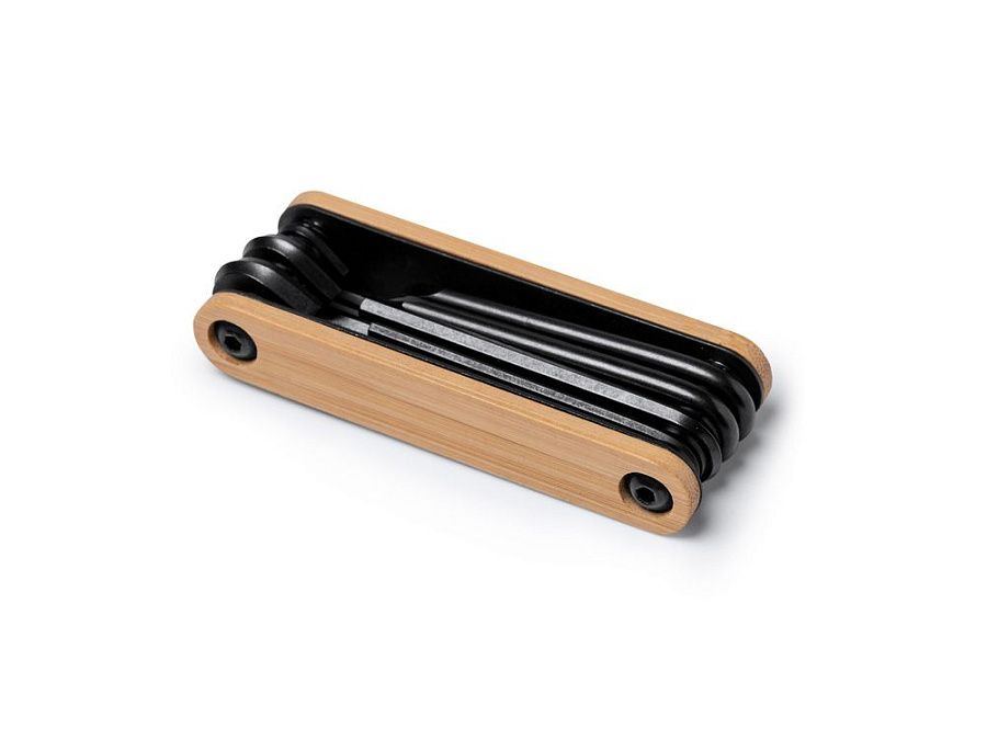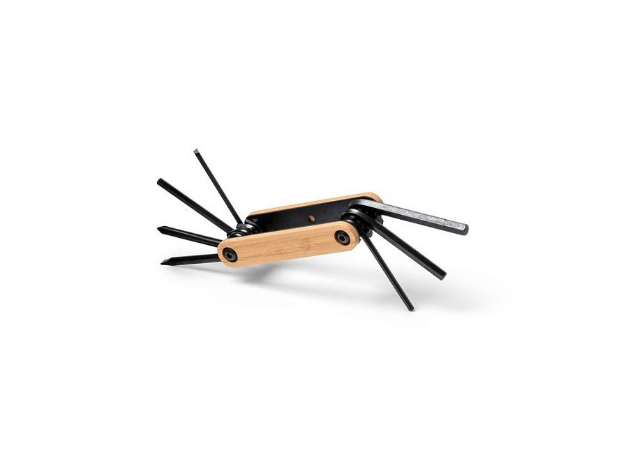 Многофункциональный инструмент с отвертками и шестигранными ключами. Нержавеющая сталь. Накладки на корпус из дерева.
