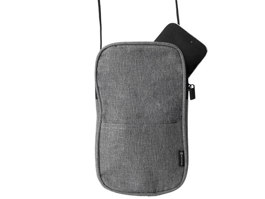 Мобильный чехол из полиэстера RPET. Основное отделение с застежкой-молнией. Внешний карман. В комплект входит шнурок для переноски. Длина шнурка 122 см.