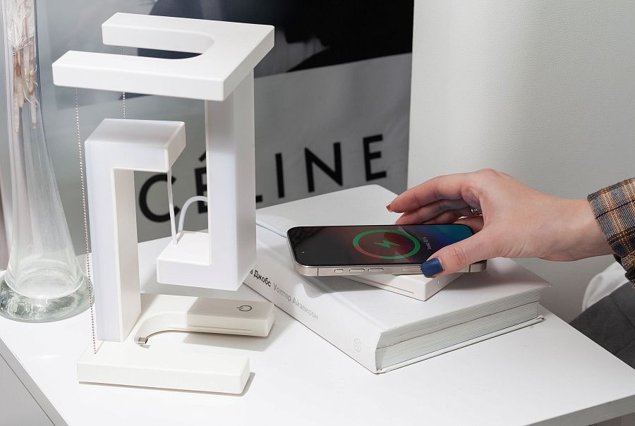 Особенностью этой лампы является встроенный съемный модуль для быстрой беспроводной зарядки мощностью 15W, который можно использовать отдельно. Также в наличии 2 USB-разъема для проводной зарядки.