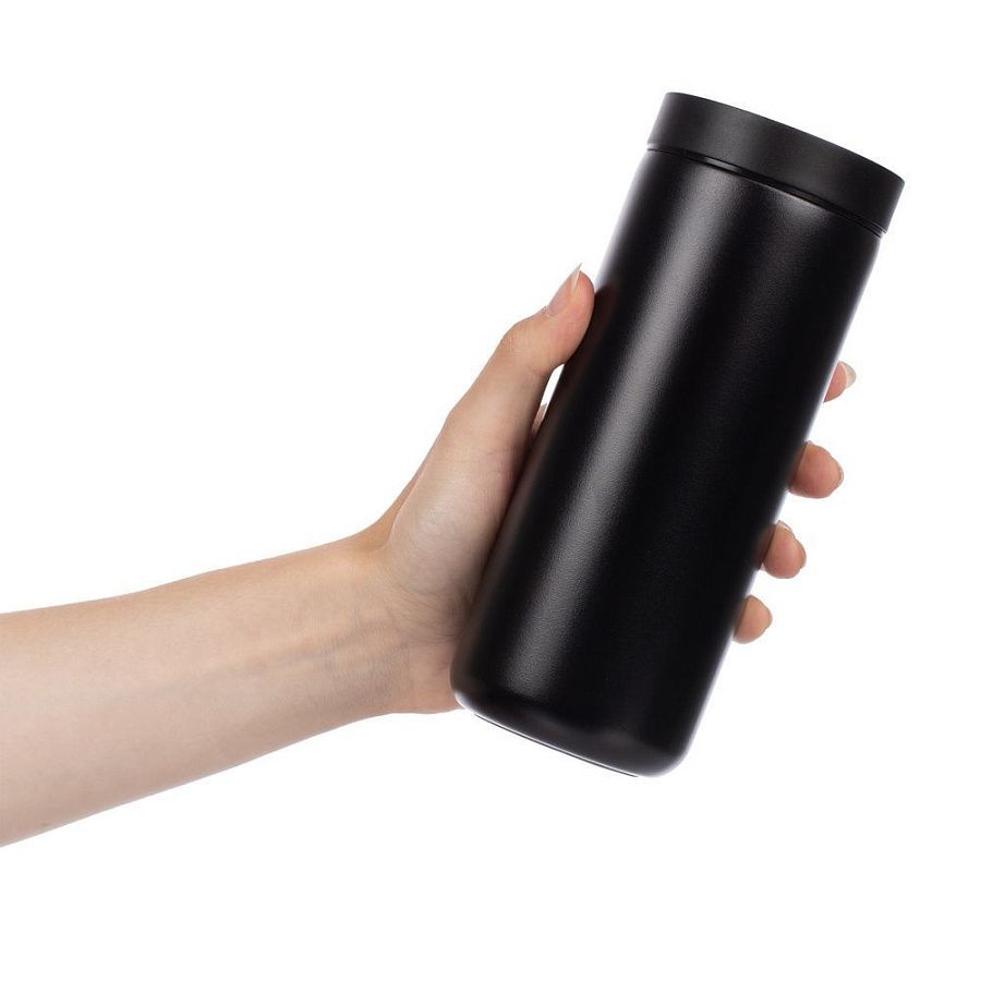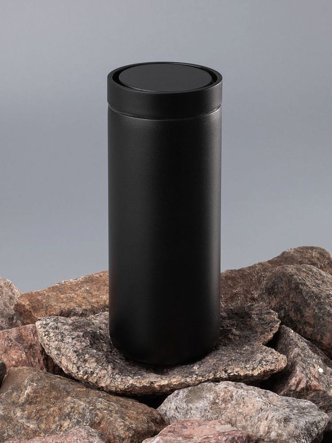 Лаконичный термостакан с удобным клапаном, который открывается и закрывается одним нажатием, — и пить можно с любой стороны.
