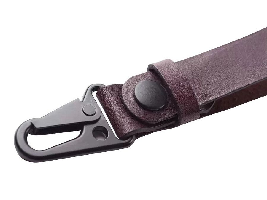 Ремешок сшит из прочной кожи оранжевого цвета. Оборудован надёжным металлическим карабином, самопроизвольное расцепление которого невозможно. Ключи, прицепленные к нему, обречены вечно храниться в глубинах сумки или кармана джинсов, и у них нет ни единого шанса потеряться. Прицепить ремешок можно к шлёвке джинсов или к куртке.