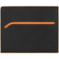 Чехол выполнен из материала Soft Touch Pearl, черный АА, дополнен окрашенным срезом края и внутренним карманом из цветного картона. Имеет 4 отделения для кредитных карт и 1 отделение для купюр.