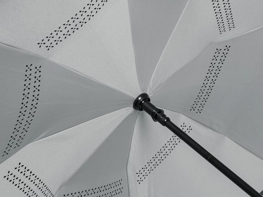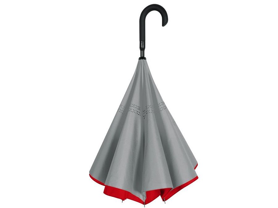 Зонт с обратным сложением складывается "внутрь". Очень удобен в использовании, например, во время посадки в машину при складывании вода остается внутри купола. Для просушки зонт можно поставить вертикально на пол в сложенном виде, что позволяет воде стекать без раскрытия зонта. Двойной купол из 190Т эпонжа. Ручка с мягким покрытием soft-touch для большего комфорта.
