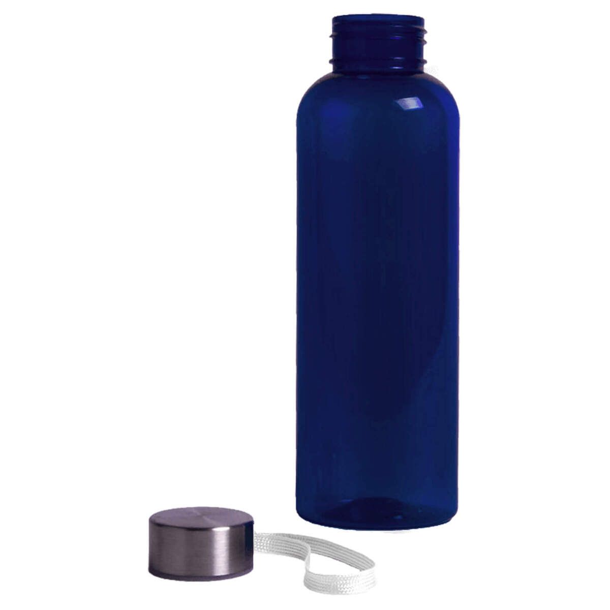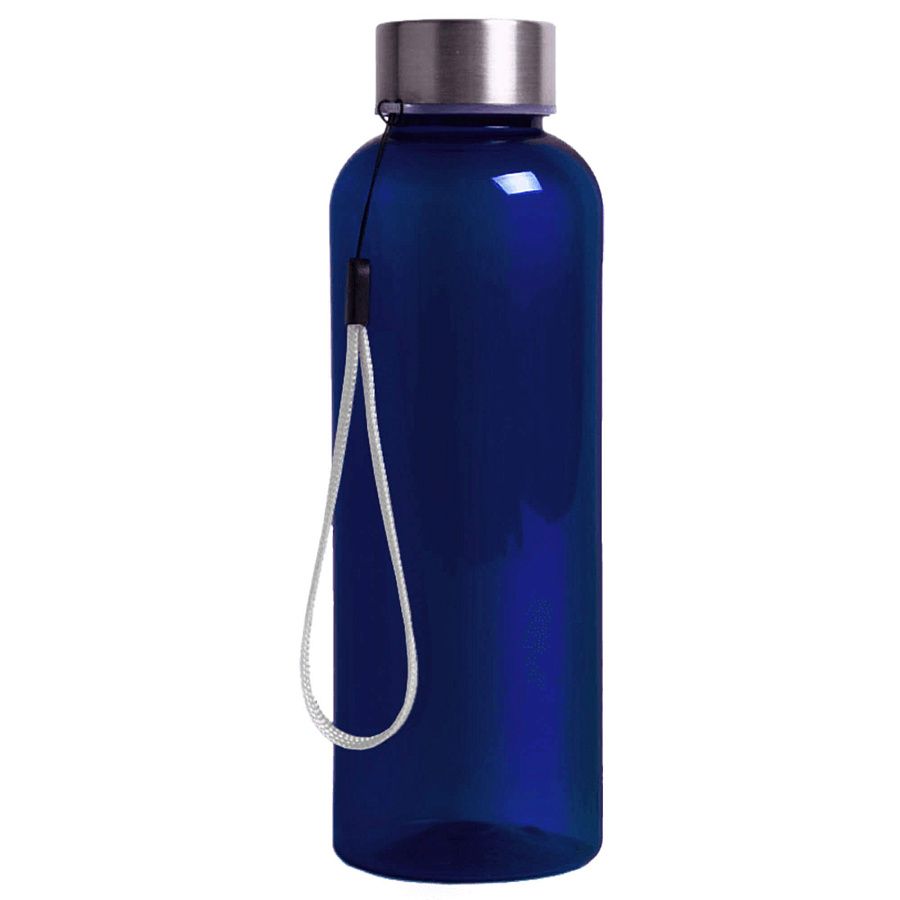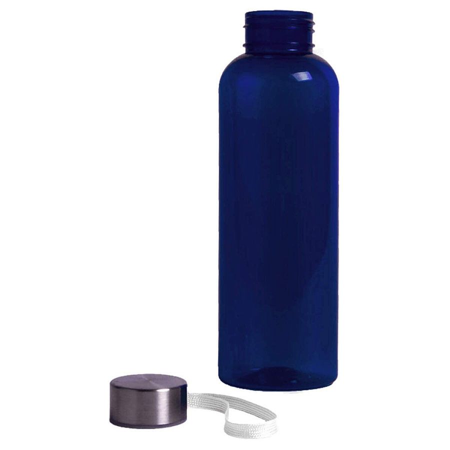 Пластиковая цветная бутылка с металлической крышкой.