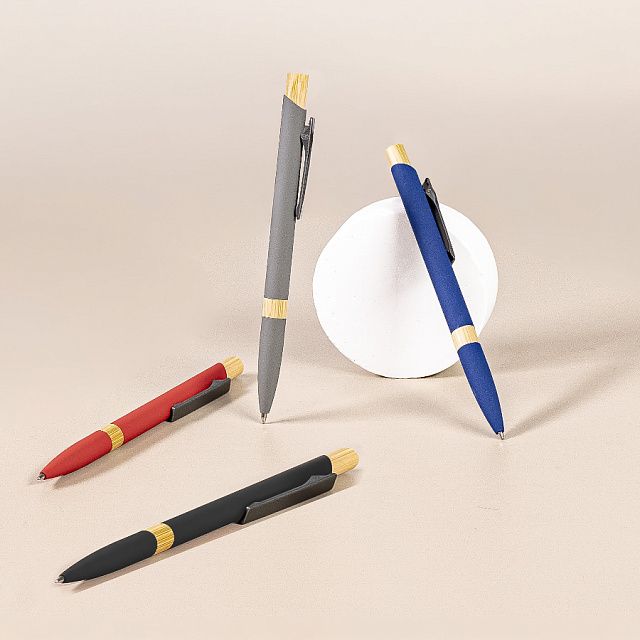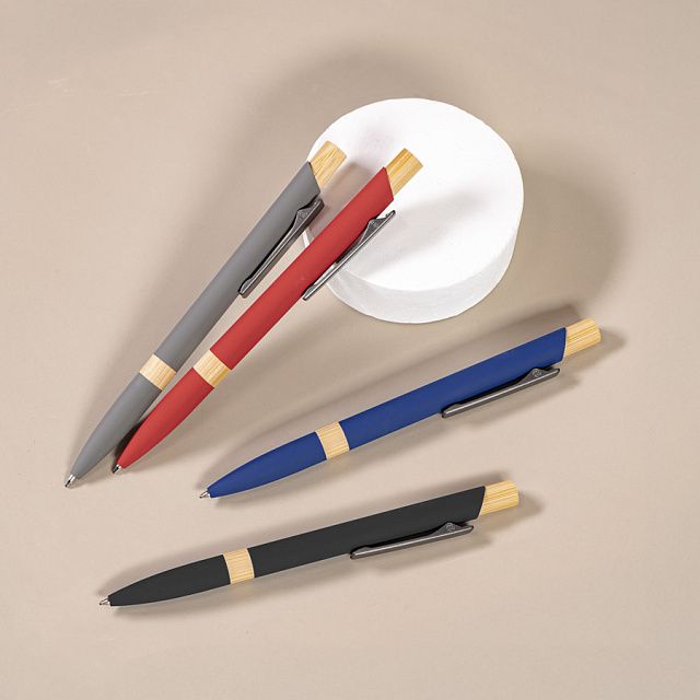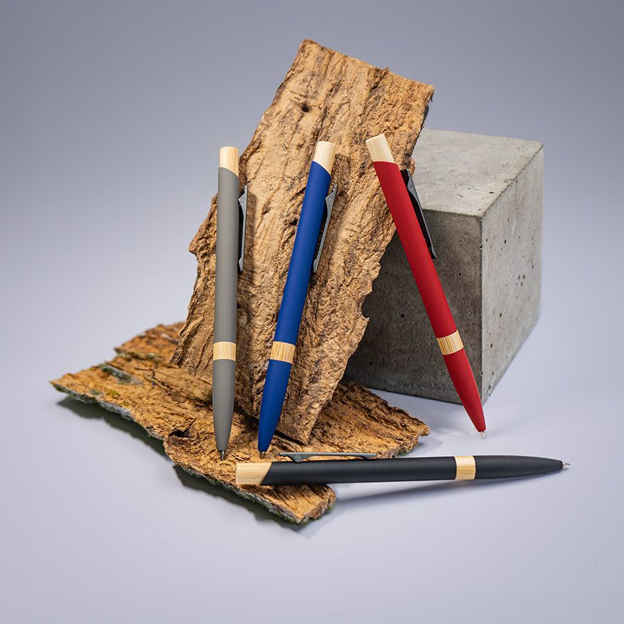 Экстравагантная модель ручки FRESCO. Корпус алюминиевый с матовым покрытием soft touch - ручку приятно держать в руке. Металлический клип-прищепка является эксклюзивом бренда В1. Отделка из натурального бамбука добавляет модели оригинальность. Кнопка нажимного механизма оптимального диаметра удобна для подушечки пальца. Визуально ручка выглядит очень благородно. В использовании гарантированно комфортна. • Цвет, близкий к Pantone Cool Gray 8C• Размер φ 10 x 140 мм• Корпус из алюминия с покрытием soft touch• Металлический клип-прищепка• Отделка - бамбук• Нажимной механизм подачи стержня• Пулевидный пишущий узел 1.0 мм• Длина линии письма 800-1000 м• Чернила Dokumental, цвет чернил синий• Сменный стержень Parker type• Виды нанесения: гравировка