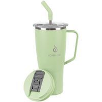 - 2 крышки в комплекте: одна на 100% герметичная с механизмом блокировки отверстия для питья, вторая — с отверстием для трубочки