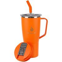 - 2 крышки в комплекте: одна на 100% герметичная с механизмом блокировки отверстия для питья, вторая — с отверстием для трубочки