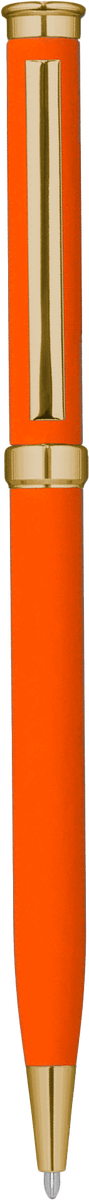 Корпус с софт-тач покрытием. Наконечник, кольцо и верхняя часть пластиковые, золотистые.
