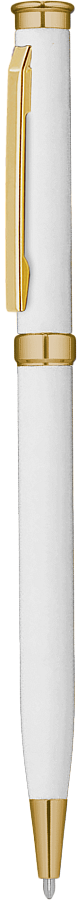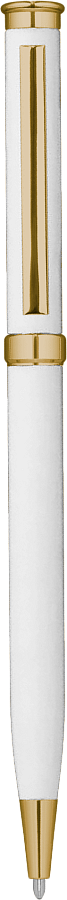 Корпус с софт-тач покрытием. Наконечник, кольцо и верхняя часть пластиковые, золотистые.